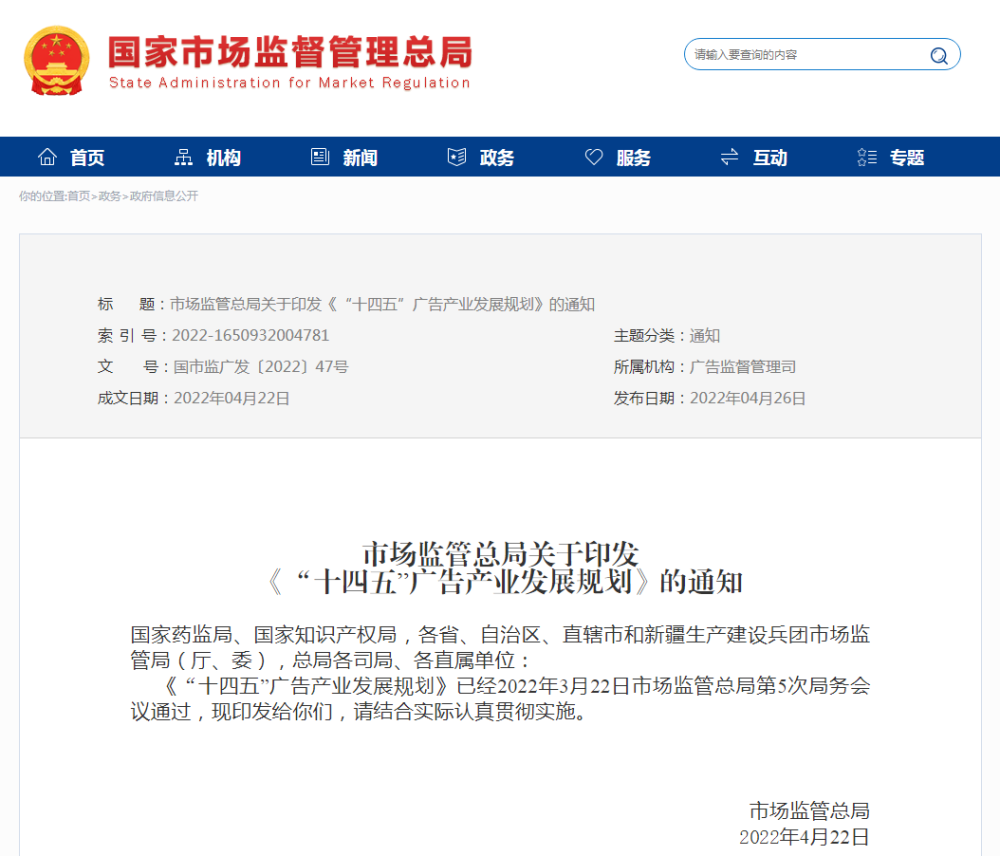 《“十四五”廣告產(chǎn)業(yè)發(fā)展規(guī)劃》